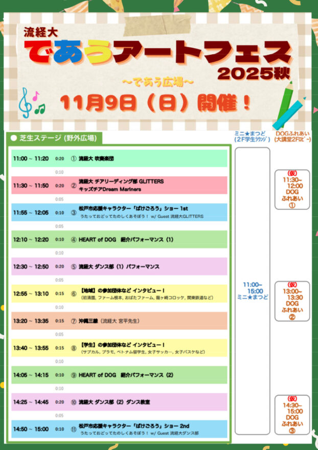 「流経大であうアートフェス2025秋~であう広場~」スケジュール!