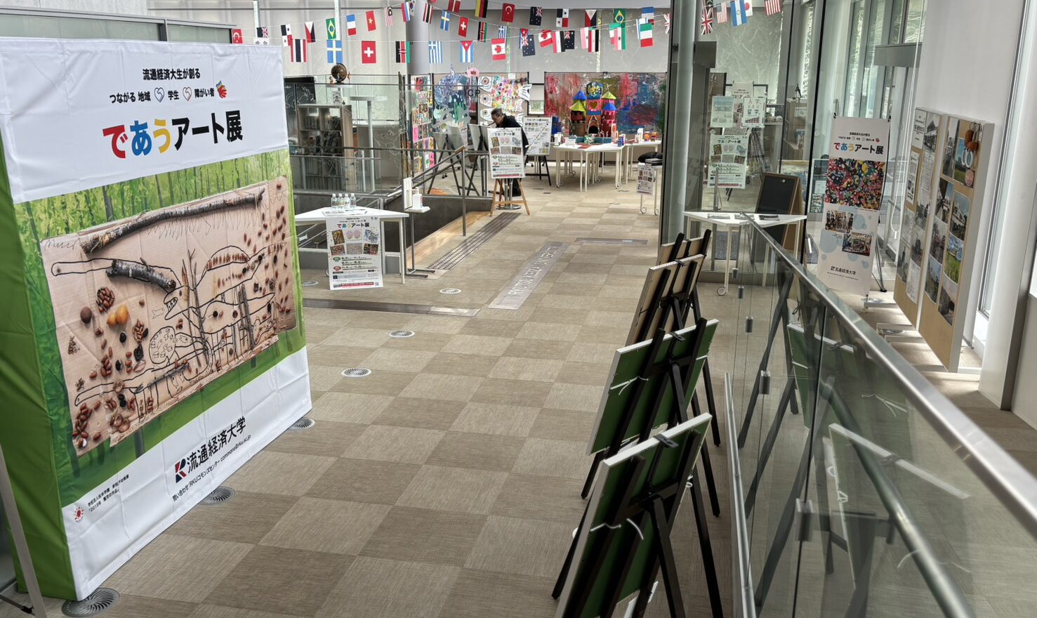 会場となった新松戸キャンパスRKUスクエアは、地域の方々によるパッチワークの力作およそ50点で彩られました。